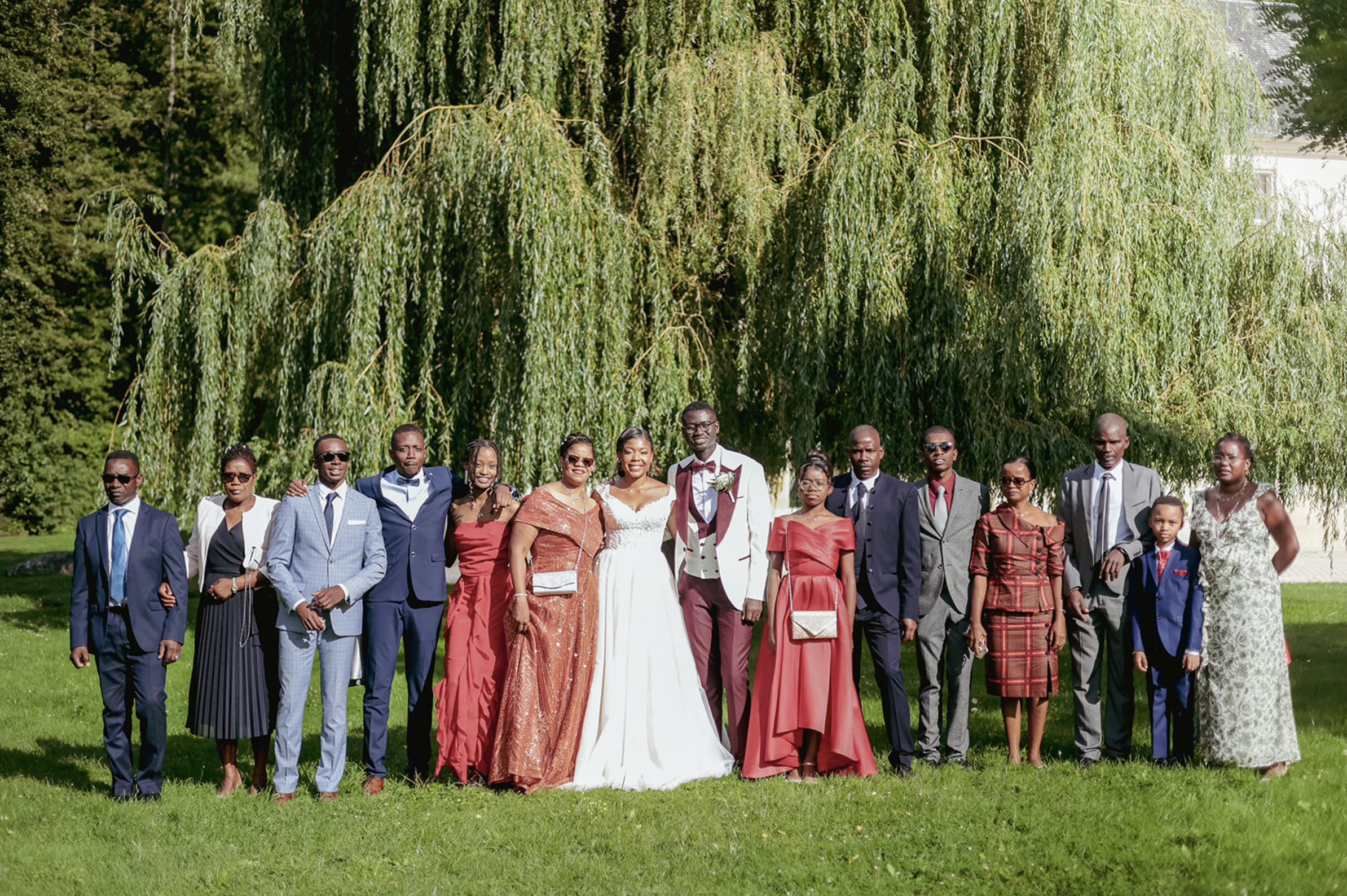 Les photos de famille montrent les groupes familiaux présents à la fête, souvent de manière formelle. Elles incluent les proches des fiancés, créant des souvenirs précieux et multigénérationnels. Ces clichés célèbrent les liens familiaux et l'importance de la famille dans l'événement.
