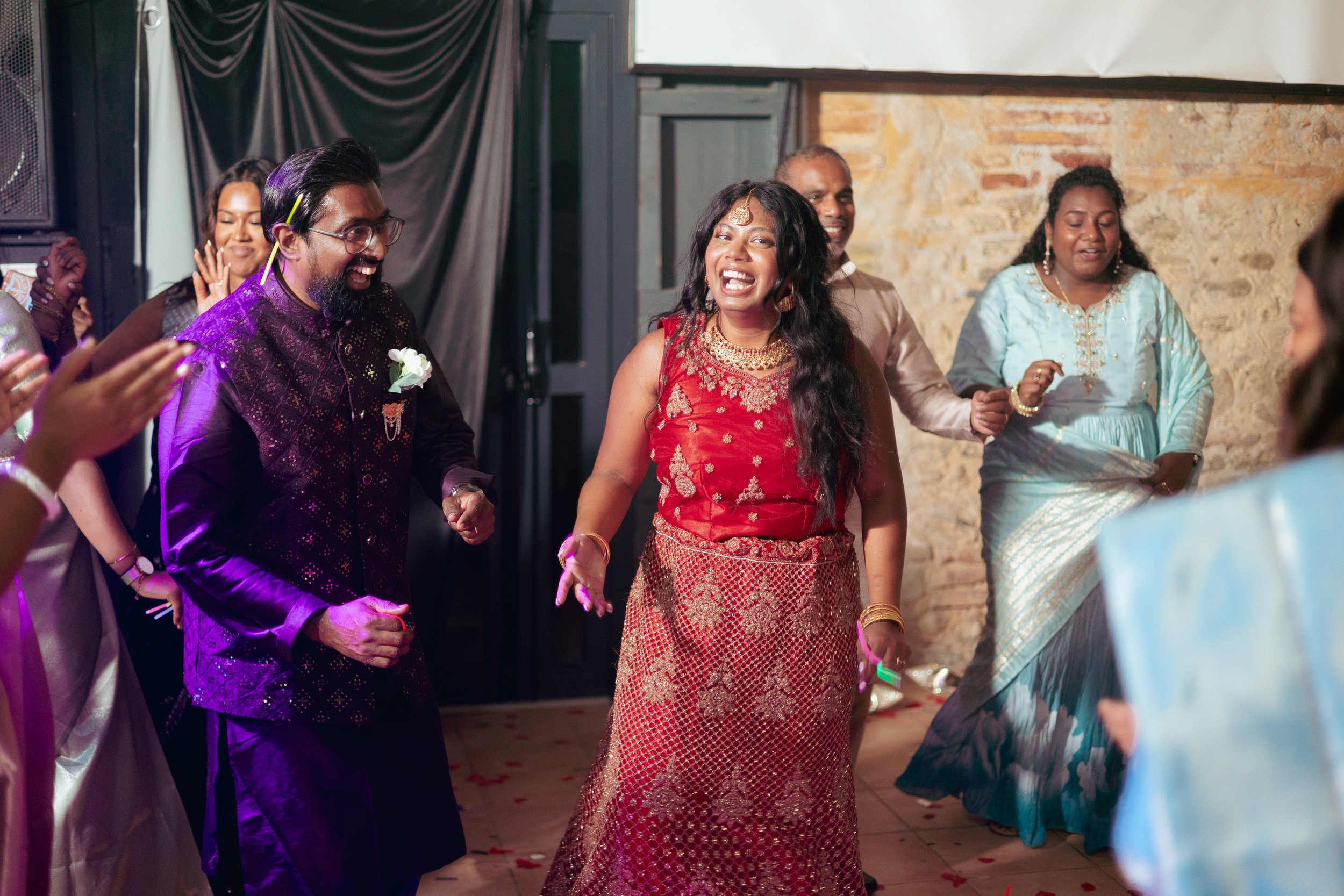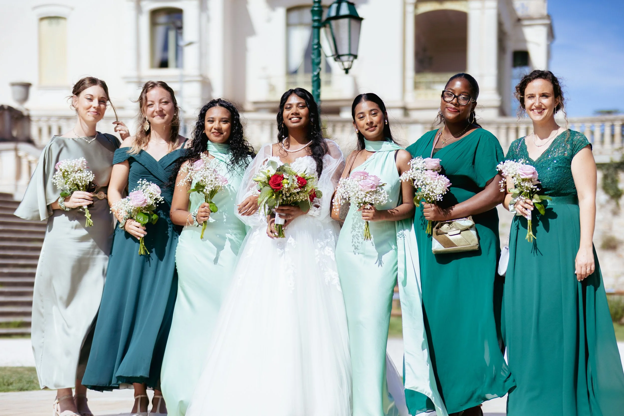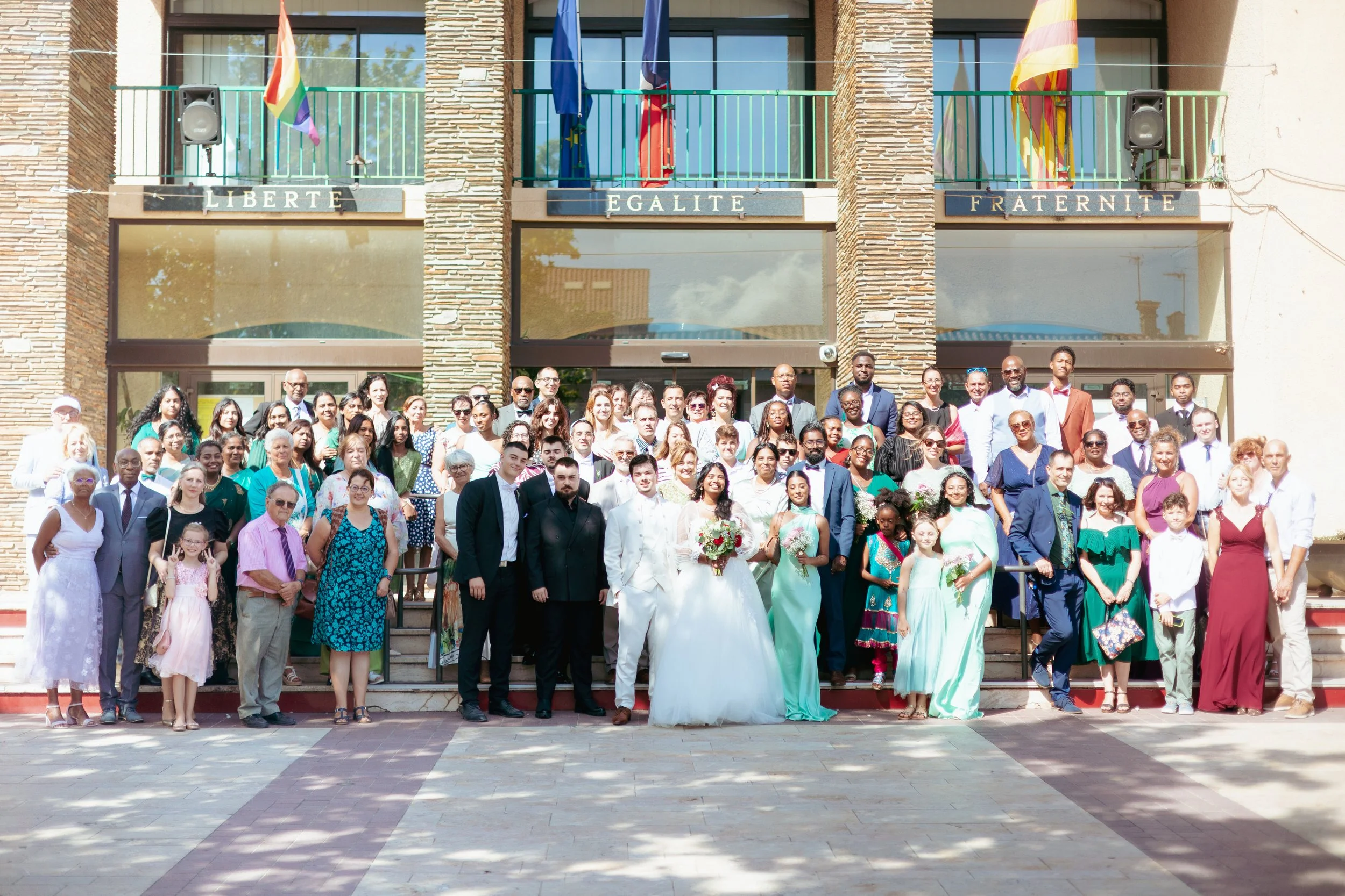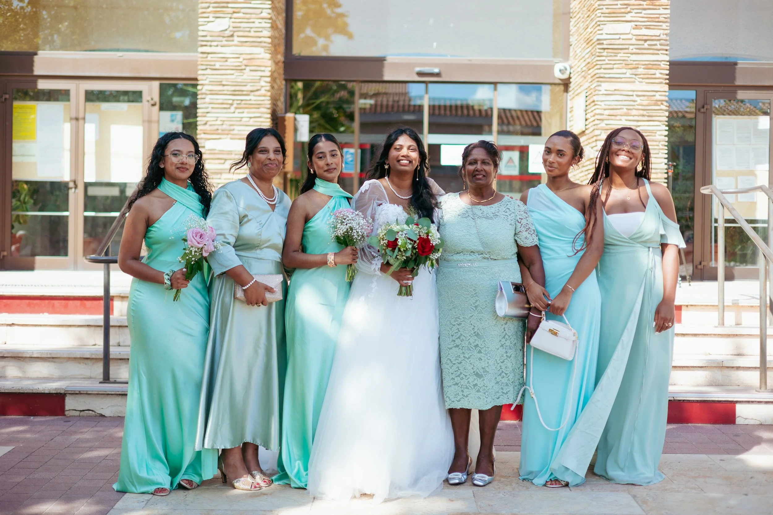 Les photos de famille montrent les groupes familiaux présents à la fête, souvent de manière formelle. Elles incluent les proches des fiancés, créant des souvenirs précieux et multigénérationnels. Ces clichés célèbrent les liens familiaux et l'importance de la famille dans l'événement.