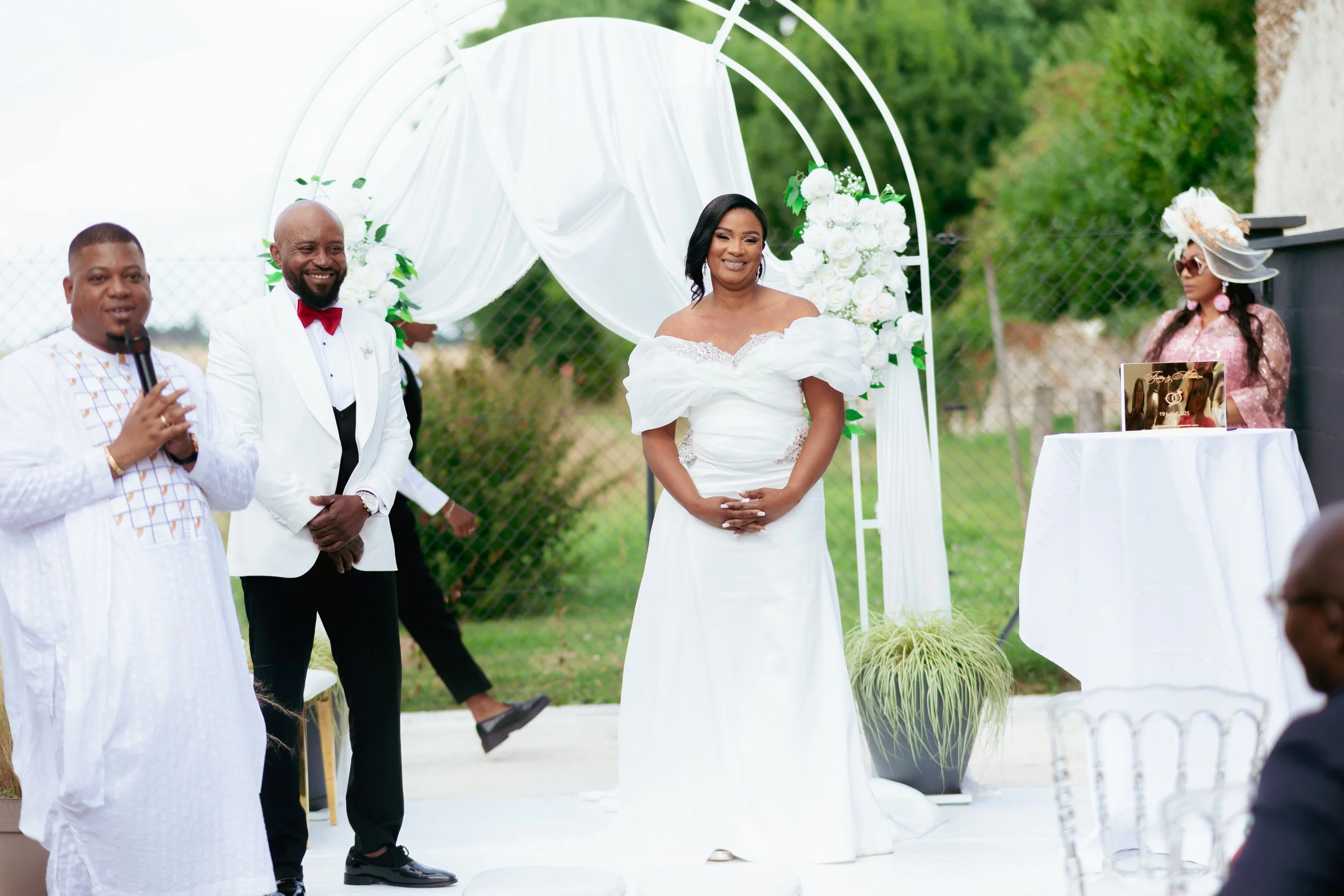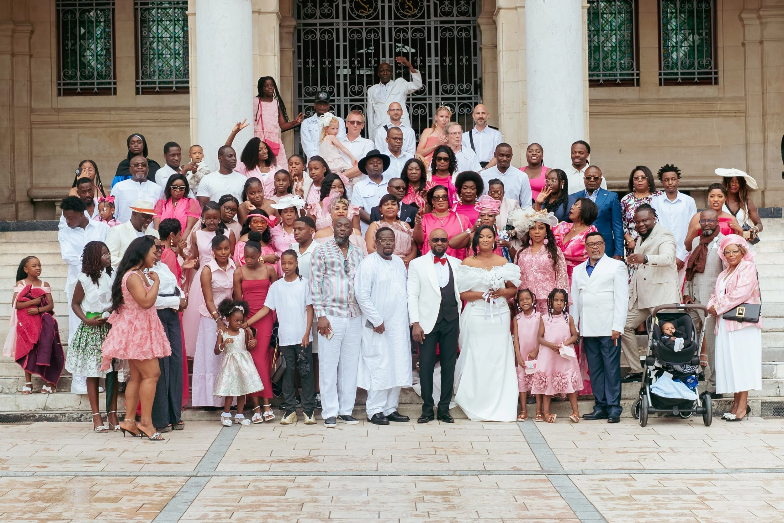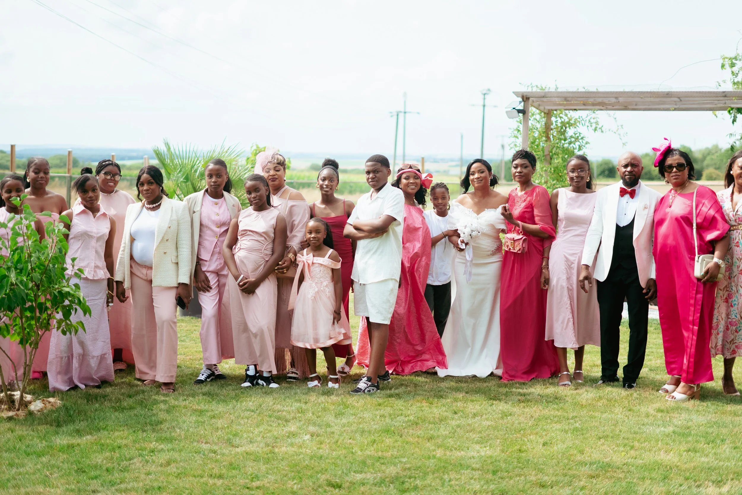 Les photos de famille montrent les groupes familiaux présents à la fête, souvent de manière formelle. Elles incluent les proches des fiancés, créant des souvenirs précieux et multigénérationnels. Ces clichés célèbrent les liens familiaux et l'importance de la famille dans l'événement.